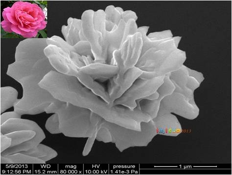 受到月季美丽而别致的结构的启发,中国科学技术大学研究人员通过特殊的湿化学工艺,得到了具有纳米结构的仿月季花状的纯银晶体,并发现这种纯银纳米“月季”是很好的光学敏感材料,比如可以用作表面增强拉曼基底等。