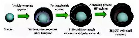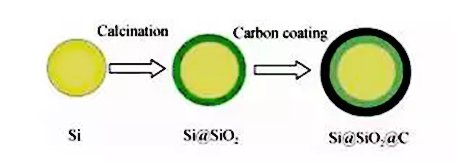 蛋黄-壳结构是在核壳结构基础上,在内核与外壳间引入空隙部分,进而形成的一种新型纳米多相复合材料。它的空腔对于硅体积膨胀有容纳作用,可实现硅核更加自由的膨胀收缩。