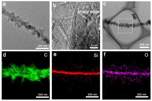 该研究所得到的三维石墨烯由高密度的直立石墨烯包覆氧化硅纳米线网络所组成,其中的氧化硅纳米线网络是通过化学气相沉积在硅基底上原位制备得到。不同于惰性的二维平面石墨烯,三维石墨烯材料中的高密度边界位点可以作为活性中心催化质子吸附与还原产生氢气。这是国际上首次提出通过对石墨烯材料的形貌调控,实现其在非掺杂、不负载助催化剂条件下的高效电催化分解水析氢。电化学测试表明,形貌优化的三维石墨烯材料电化学析氢的起始电压仅为~18 mV,与商用的Pt/C十分接近。理论研究证明,优异的析氢性能源于三维石墨烯材料丰富的尖端位点,这些高密度的边界尖端位点实现了催化惰性的本征石墨烯向高催化性能的转变。该研究为石墨烯材料在电解水析氢领域的应用提供了理论和应用基础。