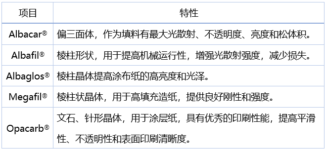 用于造纸工业的碳酸钙(PCC)包括:填充PCC,涂层PCC和耐酸PCC,包括偏三面体,菱形,棱柱状。