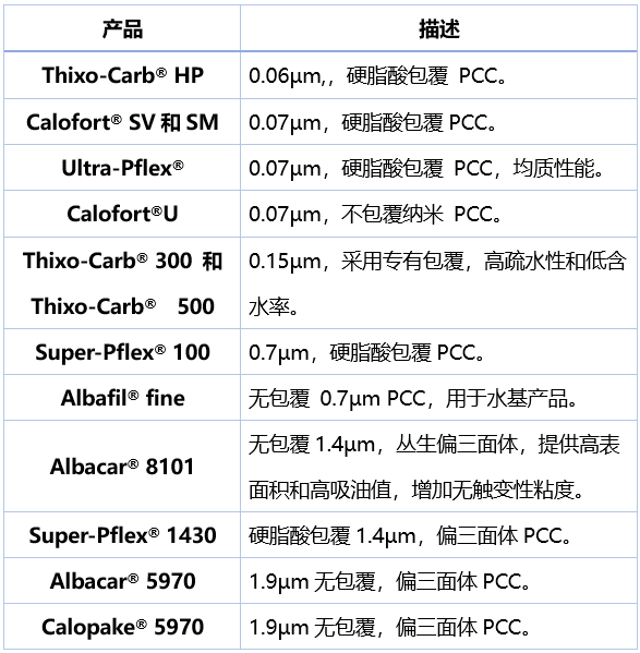 SMI的纳米PCC粒径范围从0.06微米到0.15微米,控制粒子形状,大小和粒度分布均匀。这些超细轻质碳酸钙颗粒可作为半补强填料,用于聚氯乙烯塑溶胶,聚氨酯橡胶,硅树脂,聚硫化物,硅烷化聚醚,主要用于汽车和建筑密封胶。