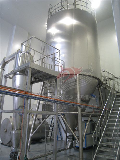 喷雾干燥机生产过程简化,操作控制方便。对于湿含量40-60%(特殊物料可达90%)的液体能一次干燥成粉粒产品,干燥后不需粉碎和筛选,减少生产工序,提高产品纯度。对产品粒径、松密度、水份,在一定范围内可通过改变操作条件进行调整,控制和管理都很方便。