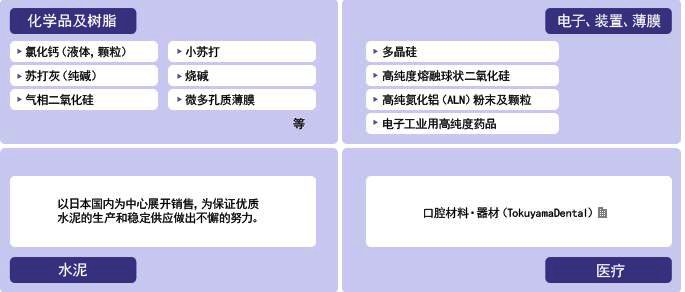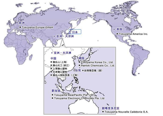 德山是主要基地设在日本的化工厂家。本公司以化学品、树脂产品、电子相关产品为中心,以高度的技术为依托,生产和销售各种化学产品。
