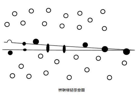 裂纹桥联是一种裂纹尖端尾部效应,是发生在裂纹尖端后方由补强剂连接裂纹的两个表面并提供一个使两个裂纹面相互靠近的应力,即闭合应力,这样导致应力强度因子随裂纹扩展而增加。即裂纹绕过扩展过程中遇上晶须时,裂纹有可能发生穿晶破坏,也有可能出现互锁现象,即裂纹绕过晶须并形成摩擦桥。