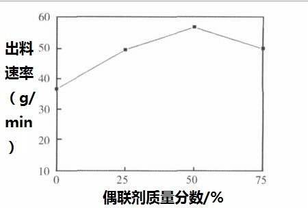 蔡楚江等通过碳酸钙一体化试验得出结论,在气流粉碎的同时进行表面改性处理,可以提高超细重钙粉的出料速率,当粉碎气流温度为60℃,改性剂溶液中偶联剂的质量分数为50%,改性剂溶液流量为1.5mL/min时,重钙颗粒的粉碎出料速率由21.0g/min提高到56.7g/min,出料速率提高了170%。一体化工艺可提高生产效率并降低成本。