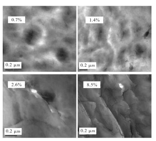 不同石墨烯含量聚丙烯复合材料的透射电镜(TEM)照片
