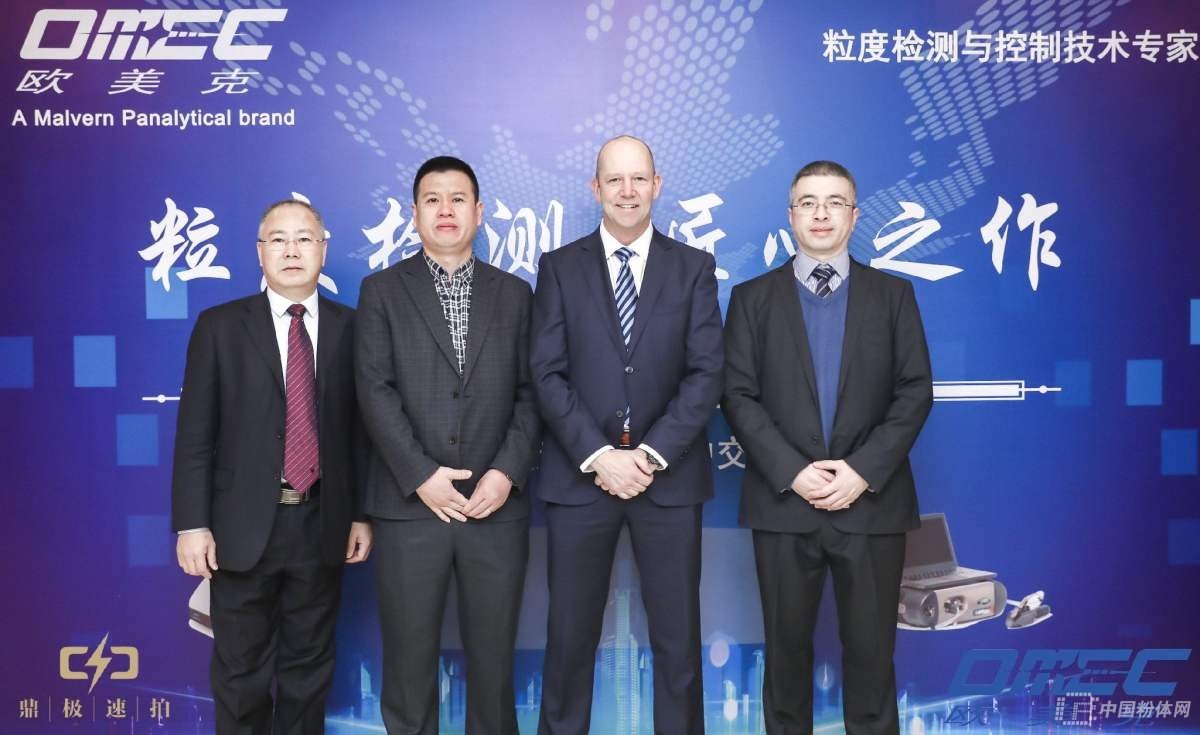 欧美克营销总监吴汉平先生,中国粉体网总经理付信涛先生,欧美克战略及品牌发展总负责人Andre Balogh先生,首席研究员兼产品技术总监傅晓伟博士(从左至右)