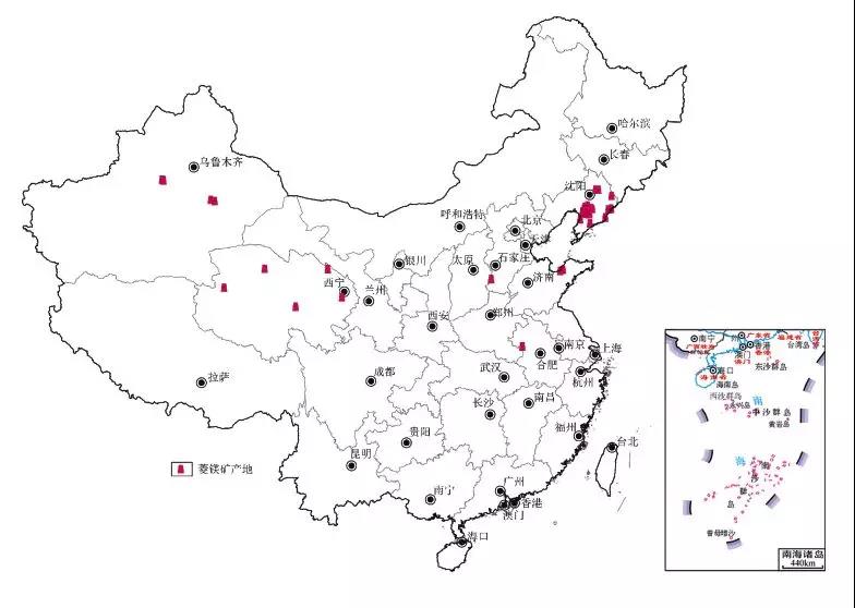 探明储量的矿区分布于9个省(区),以辽宁菱镁矿储量最为丰富,占全国的85.6%。全国现有矿山开采企业超过200家,年产量1800万t。利用矿石生产镁质原材料的能力已达1500万t以上,此外山东、新疆、甘肃等地菱镁矿也较为丰富。