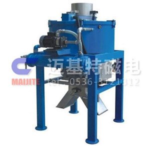 MJT-DF系列电磁干粉高梯度磁选机是我公司专门针对干粉物料研究开发的一种新型除铁设备,是矿山、耐火材料、陶瓷、玻璃、化工、石英等行业的高纯除铁设备,能除去小颗粒或粉状非磁性原料中的铁磁杂质。其效果达到国内外同类产品领先水平。采用油水复合冷却,磁场强度高达30000GS,吸力强大,抓捕力强,不仅可以将原料在研磨过程中产生的机械铁基本除净,(除铁效果高达98%),而且一般永磁除铁设备难以去除的原矿中氧化铁(Fe2O3)也可以除去一部份,除铁效果卓越。