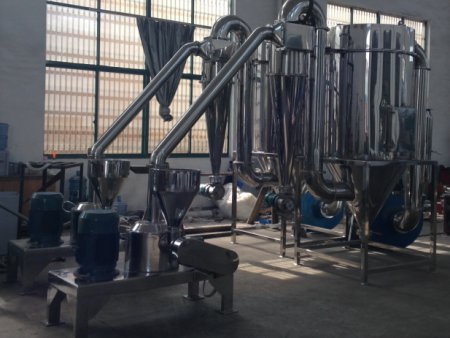 超微粉碎机 由主机、辅机、电控箱三个部分组成,具有风选式、无筛、无网、粒度大小均匀等多种性能,生产过程连续进行。该机达到国际先进水平,广泛适用于制药、化工、食品等行业的物料粉碎。