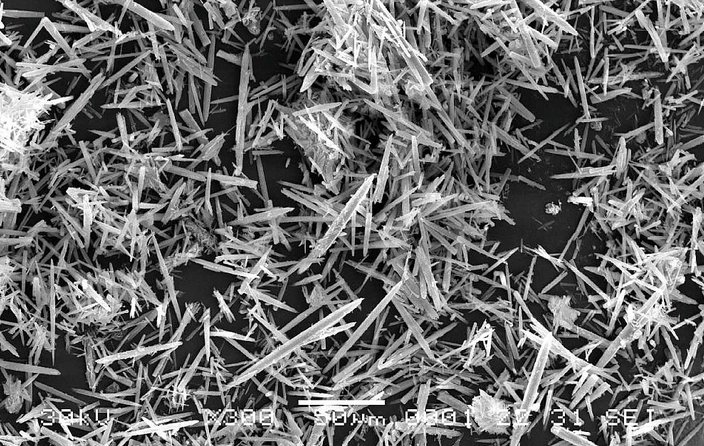 碳酸钙晶须是一种新型针状材料,因其结晶形式为单晶,晶体内部几乎无缺陷,具有强度高、模量高、耐热与隔热性好等优良特性,与塑料复合时和基体树脂的相容性好,可以改善制品的加工性能,提高力学性能,所以广泛应用于汽车、塑料、电气部件制造、高光洁度结构部件制造等领域。碳酸钙晶须有方解石、文石和球霞石3种类型,目前大量使用和正在研究的碳酸钙晶须几乎都是方解石型,而文石型、球霞石型制品很少。