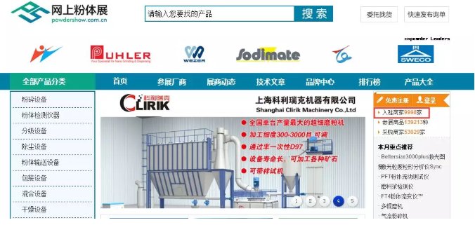 粉体展平台创建于2007年,是粉体领域电子商务平台。目前汇集1万余家国内外参展商的140000余种产品的图片、参数、详细资料等内容。每天有数百家采购商通过该平台向参展商进行一对一的采购询盘。该平台共分20个主频道,300余个展示专场,基本覆盖了粉体涉及的各个领域。