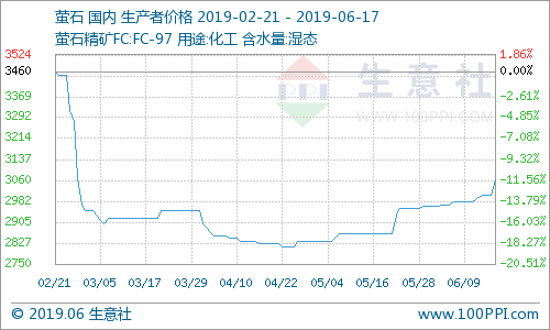 据统计,国内萤石价格走势上涨,截止17日国内萤石均价为3062.5元/吨,近期国内萤石装置开车正常,场内矿山和浮选装置正常开工,场内萤石供应略显紧张,近期下游氢氟酸价格上涨,对于萤石市场按需采购,萤石市场价格走势上涨。近期下游装置开工情况一般,场内萤石现货供应正常,终端下游接货情况好转,导致市场价格走势上涨。截止17日内蒙古地区97萤石湿粉价格在2900-3100元/吨,福建地区97萤石湿粉商谈主流在3000-3200元/吨,河南地区97萤石湿粉价格在2900-3200元/吨,江西地区97萤石湿粉价格在3000-3200元/吨,萤石价格走势上涨。