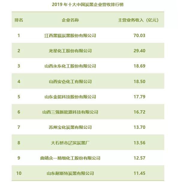 2019年十大中国炭黑企业营收排行榜.橡胶技术网