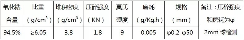 本公司生产的氧化锆(TZP)磨介采用优质的原料和先进的工艺技术精制而成。具有研磨效率高、流动性好、耐冲击、低磨耗、使用成本低等特性。适合各种砂磨机、搅拌球磨机、滚筒球磨机等,可对电子浆料、陶瓷粉末、磁性原料、电池原料、稀土材料、非金属矿、颜料、油水墨、重钙、钛白粉、农药、食品医药原材料等进行高效、结晶和经济的分散和研磨。规格0.2-50mm。