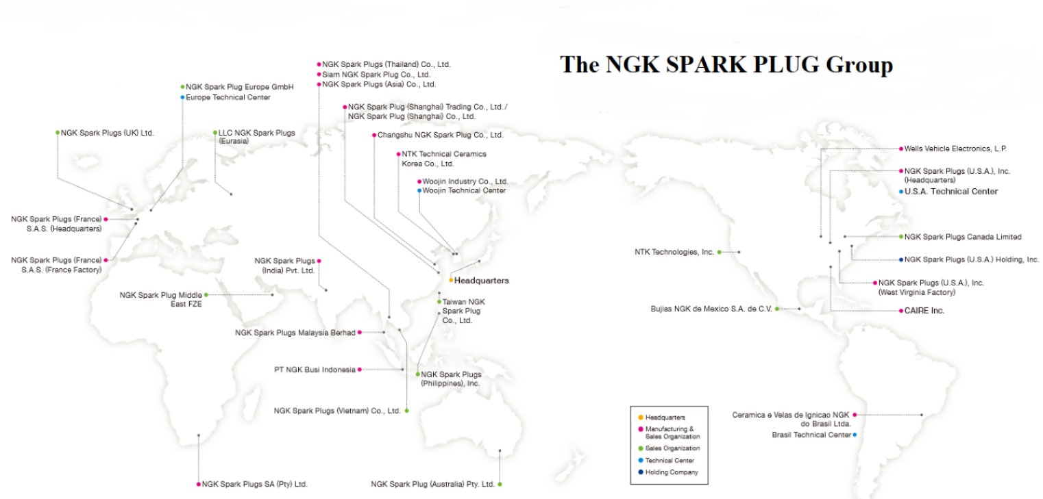 为了满足来自世界各地用户的需求,多年来NGK依托于日本本土,不断在世界各地拓展自己的商业版图。