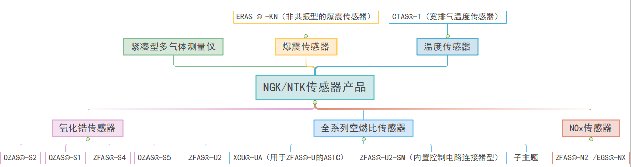 为应对更加严格的尾气排放法规并改善燃烧效率,用传感器来检测氧气浓度,以此来保持最佳的燃烧状态。主要产品包括:氧化锆传感器、全系列空燃比传感器、NOx传感器、温度传感器、敲击传感器、紧凑型多气体测量仪。