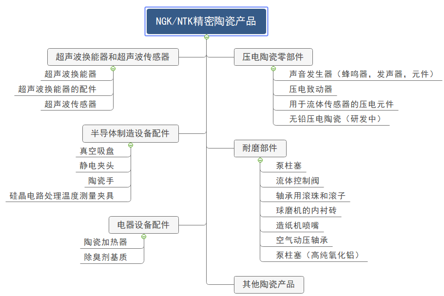 主要的产品涵盖耐磨零件、半导体制造设备、电气设备、超声波换能器和超声波传感器及其他精密陶瓷领域。