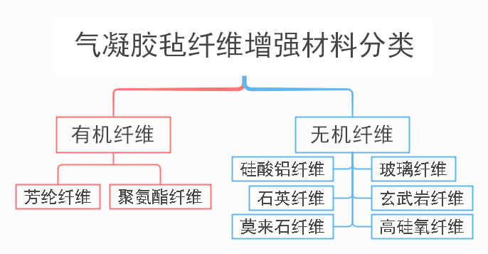 气凝胶毡纤维增强材料分两类:一类是韧性,强度较好的有机纤维;另一类是耐高温的无机纤维。