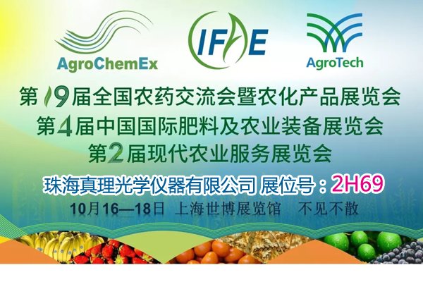 由中国农药工业协会主办的第十九届全国农药交流会暨农化产品展览会(ACE)、第四届中国国际肥料及农业装备展览会(IFAE)、第二届现代农业服务展览会(AgroTech)定于2019年10月16日~18日在上海世博展览馆盛大举行。珠海真理光学仪器有限公司携高性能的激光粒度仪亮相,欢迎莅临真理光学展位2H69!
