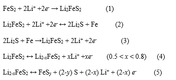 中国粉体网讯 基于转化反应的黄铁矿型FeS2具有环境友好、价格低廉以及理论比容量高(890mAg-1)等优点。在锂电池中,FeS2在充放电过程中会发生如下反应: