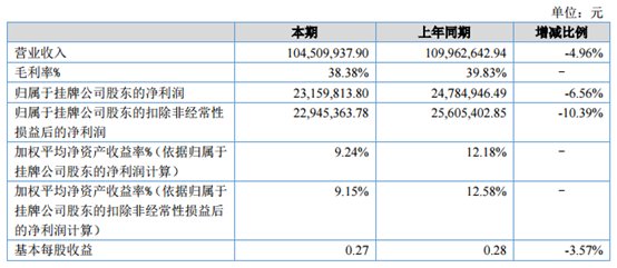 2019年上半年,公司实现营业收入15.53亿元,同比下滑5.95%;净利润8943.28万元,同比下滑41.98%;扣非后净利润6331.28万元,同比下滑56.65%。