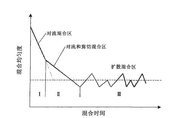 但实际混合过程中发生的对流、剪切、扩散3种混合机理不可能在各自的区域独立起作用,而是随着混合的进行而同时出现,其混合特性如图2所示。