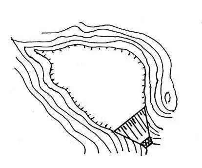 傍山型尾矿库是在山坡脚下依山筑坝所围成的尾矿库。它的特点是初期坝相对较长,初期坝和后期尾矿堆坝工程量较大;由于库区纵深较短,尾矿水澄清距离及干滩长度受到限制,后期坝堆的高度一般不太高,故库容较小;汇水面积虽小,但调洪能力较低,排洪设施的进水构筑物较大;由于尾矿水的澄清条件和防洪控制条件较差,管理、维护相对比较复杂。国内低山丘陵地区中小矿山常选用这种类型尾矿库。