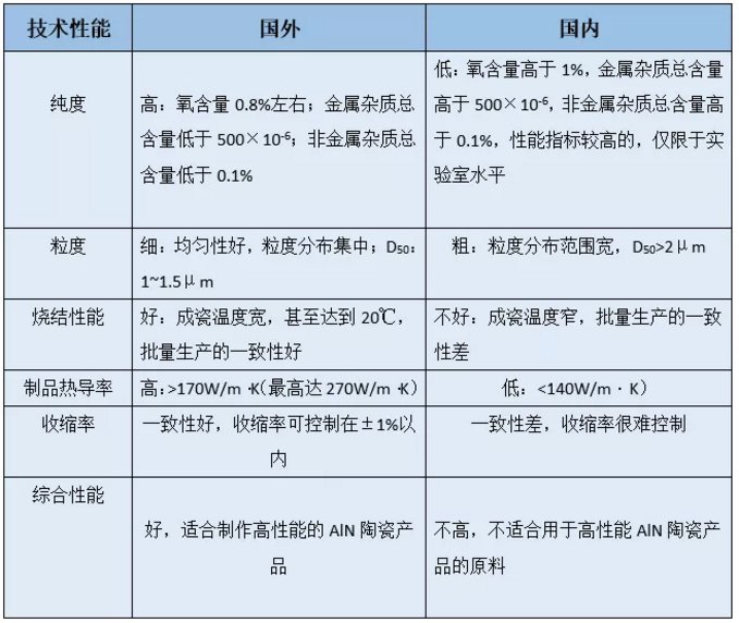 国内外氮化铝粉体技术差距较大