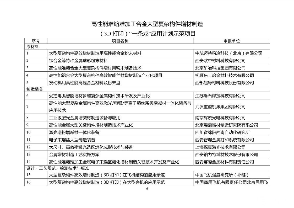 高性能难熔难加工合金大型复杂构件增材制造(3D打印)“一条龙”应用计划