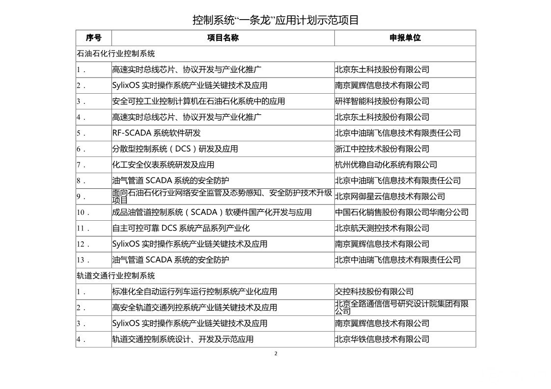 控制系统“一条龙”应用计划