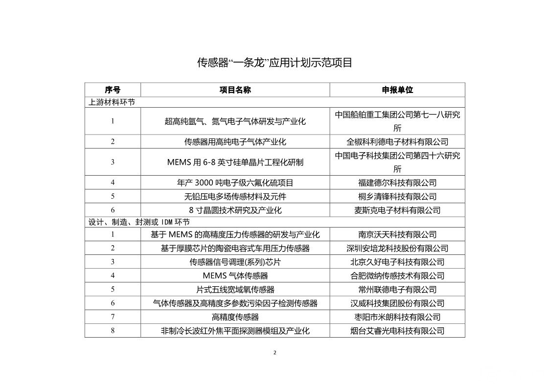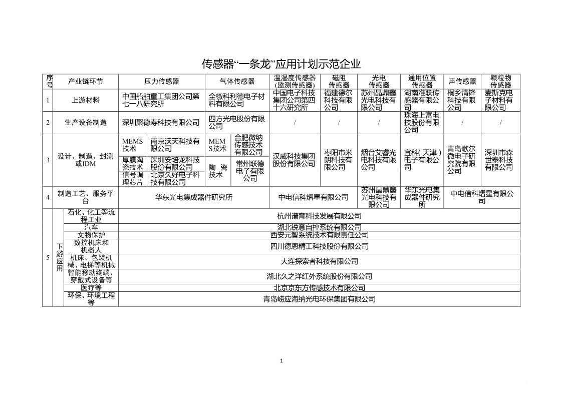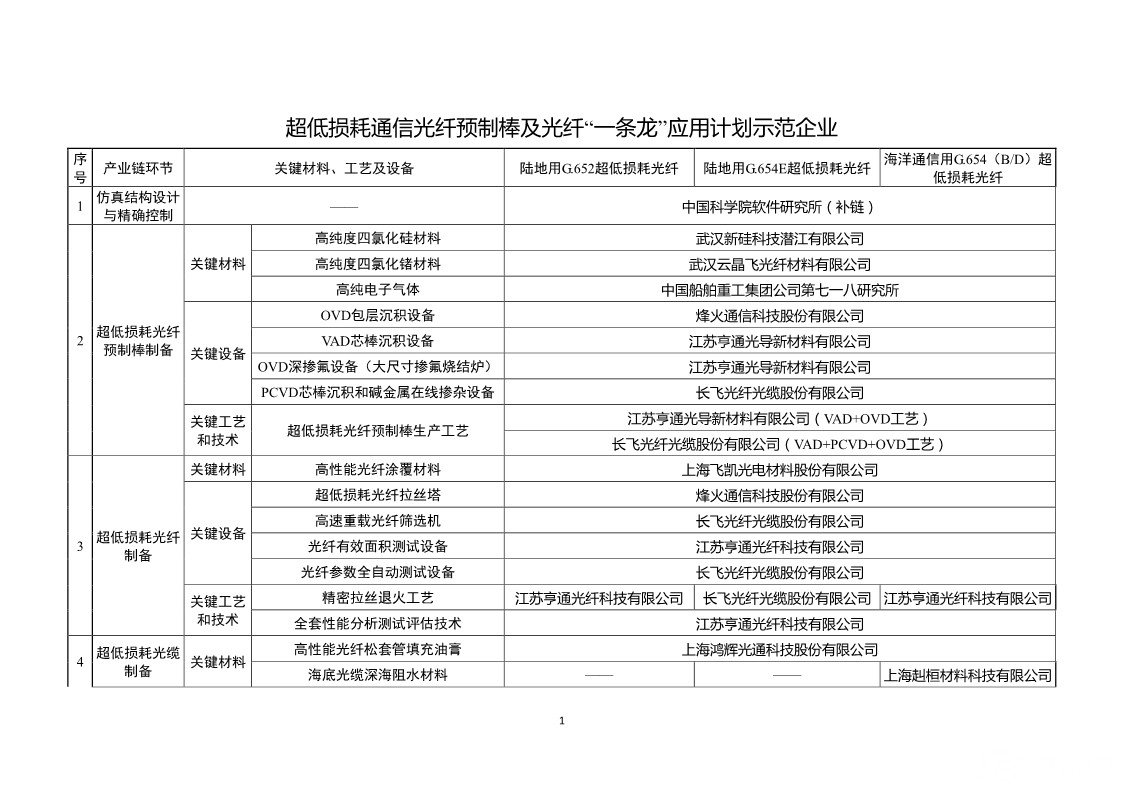 根据公示,为聚焦解决工业基础产品和工艺应用难题,工信部继续组织开展工业基础领域重点产品、工艺“一条龙”示范应用推广工作。经企事业单位自愿申报,各地工业和信息化主管部门、中央企业推荐,第三方推进机构组织专家评审,本次公示的“一条龙”应用计划分为六类,分别为:传感器、控制系统、超低损耗通信光纤预制棒及光纤、航空发动机和燃气轮机耐高温叶片、高性能难熔难加工合金大型复杂构件增材制造(3D打印)、石墨烯。