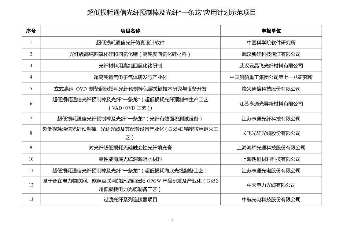 超低损耗通信光纤预制棒及光纤“一条龙”应用计划