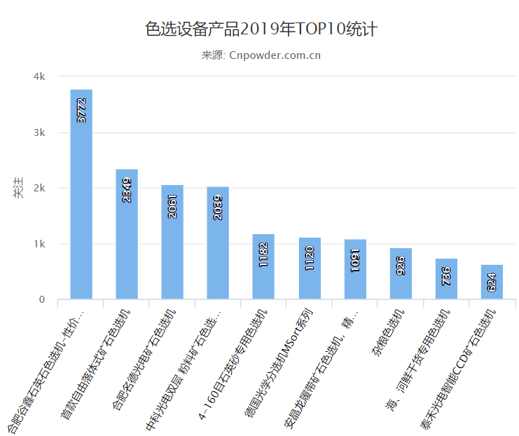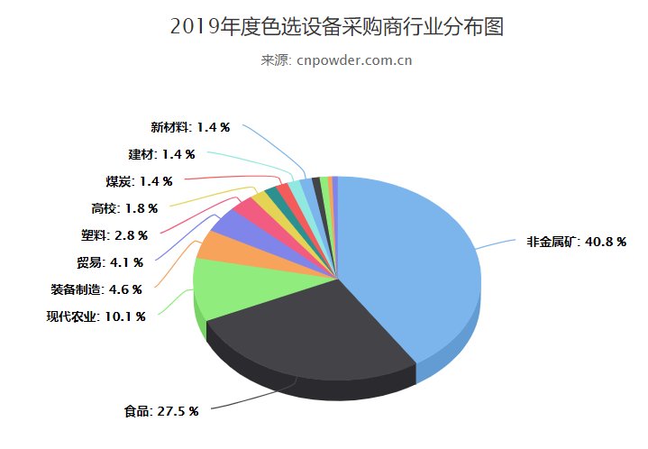【编者按】粉体装备是粉体工业的脊梁,中国粉体产业升级的关键之一就在于装备的发展水平。目前从全球来看,粉体装备行业呈现出智能化、成套化、个性化、服务化、绿色化等发展特征。作为国内领先的粉体工业互联网平台,中国粉体网依托旗下电子商务平台——“网上粉体展”积累了大量的行业数据,在岁末年初之际,中国粉体网编辑特将粉体行业部分专用设备及仪器的市场应用、相关产品及供应商的关注度等信息分享给读者,以供参考。今天我们关注的是色选设备。