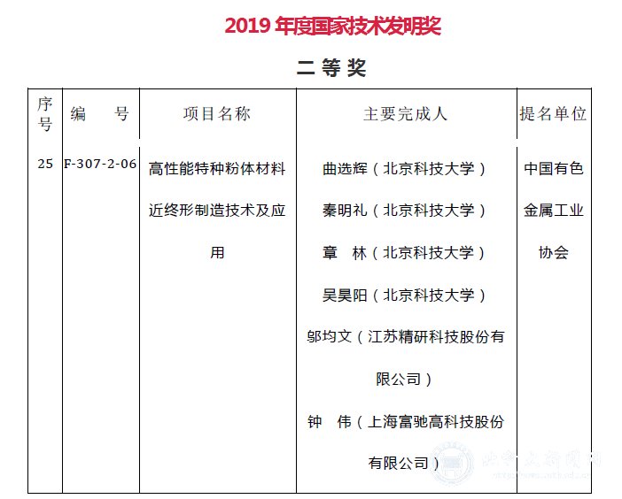 近日,荣获2019年度国家技术发明二等奖、由北京科技大学曲选辉教授团队、江苏精研科技股份有限公司及上海富驰高科技股份有限公司等单位完成的“高性能特种粉体材料近终形制造技术及应用”项目,标志着我国粉末注射成形产业取得了重大的发展。