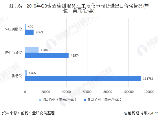 图表6: 2019年Q3检验检测服务业主要仪器设备进出口价格情况(单位:美元/台套)
