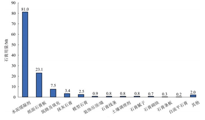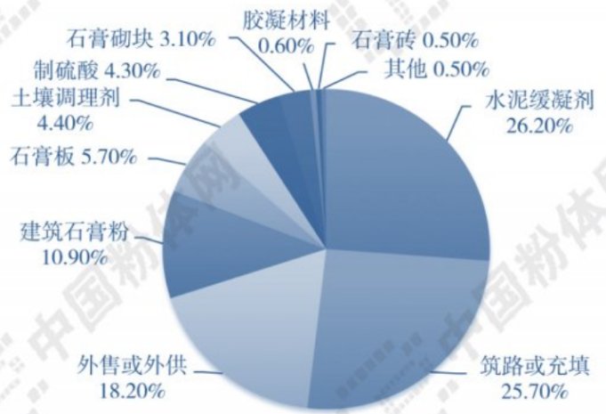 在建材业方面主要用于水泥缓凝剂、混凝土膨胀剂、a或β建筑石膏粉等。其中水泥缓凝剂应用占据最大比重。