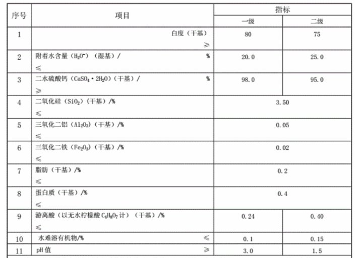 柠檬酸石膏是指柠檬酸生产过程中,沉淀型柠檬酸钙与硫酸反应生成的富含二水硫酸钙的副产物。柠檬酸生产过程中,应对副产的柠檬酸石膏质量进行控制,柠檬酸石膏质量等级分为一级和二级,低于二级为等外品,柠檬酸石膏中不得含有活性碳和可见的外来杂质(如砖石、塑料、玻璃等)。