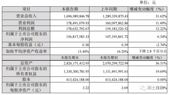 中国粉体网讯 2月26日,金力永磁发布业绩快报,2019年1-12月实现营业收入16.97亿元,同比增长31.62%,新材料行业平均营业收入增长率为3.62%;归属于上市公司股东的净利润1.57亿元,同比增长6.54%。