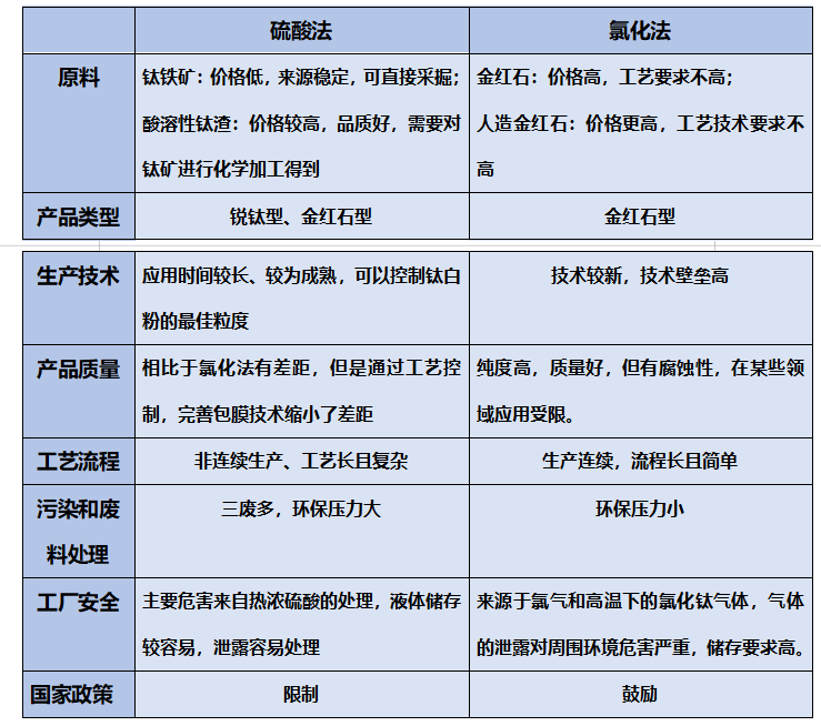 硫酸法和氯化法工艺对比