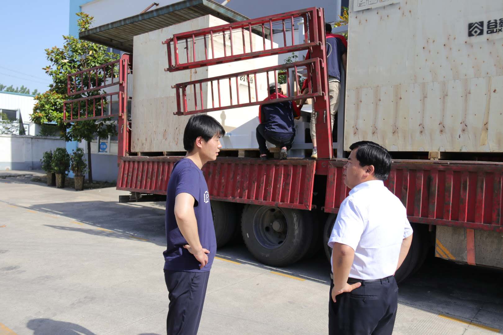 来到谷鑫,熟悉的发货装车画面映入眼球。经过询问,这次的两台色选机器要发往内蒙古。