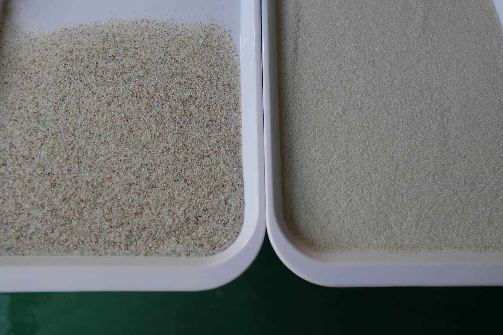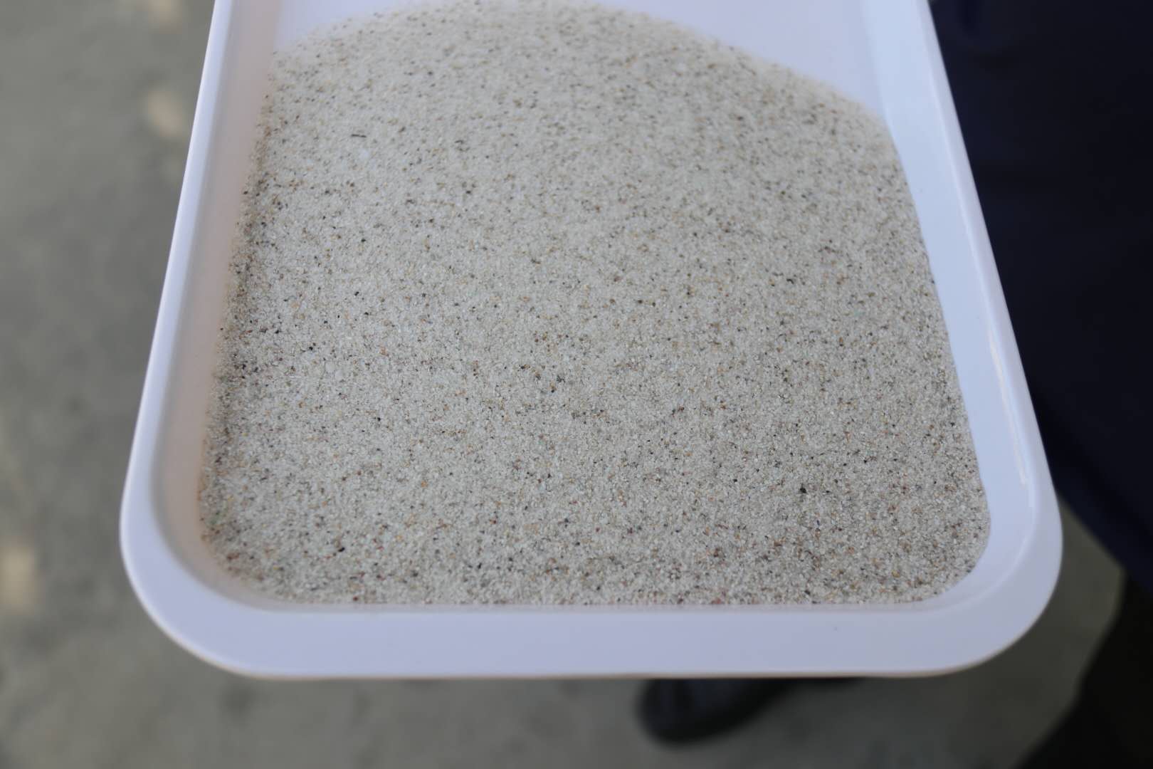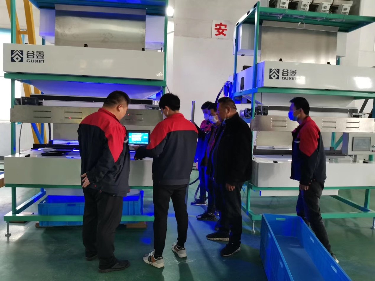 4月,谷鑫老客户王总在谷鑫车间,工作人员使用选砂机为其进行色选(现场图)
