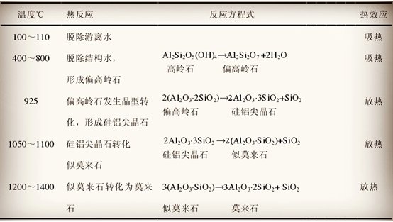 高岭土在加热过程中会发生脱水、分解、析出新物相等物化变化,较为复杂,一般认为,高岭土在加热过程主要包括两个阶段:脱水阶段和脱水后产物的转化阶段。