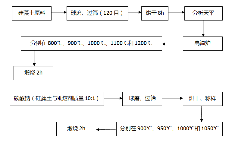米增财等在《硅藻土煅烧处理及其孔隙性能研究》一文中,运用煅烧法以及添加助溶剂预处理手段,来探究其高温烧结下能否保持一定原始孔隙吸附性能。