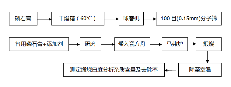 方官涛等在《磷石膏煅烧过程中添加剂对其杂质和白度影响》一文中,对磷石膏进行球磨、筛分,考察了煅烧温度、煅烧时间、添加剂量对磷石膏中铁、有机碳的脱除情况及磷石膏白度的影响进行试验。