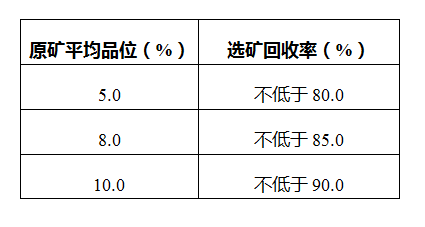 晶质石墨选矿项目,选矿回收率按原矿平均品位分别符合以下指标,不低于相关要求: