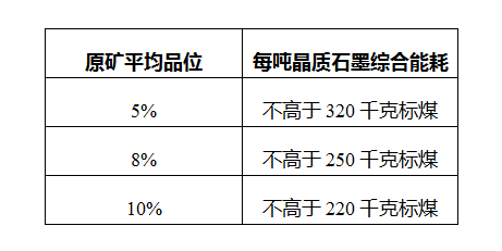 2.隐晶质石墨:不高于100千克标煤/吨;