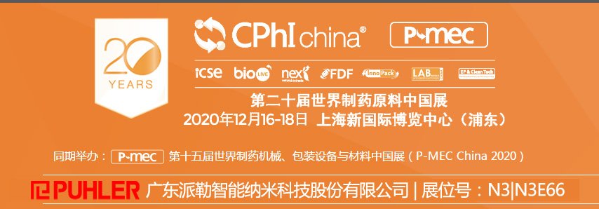 2020年CPhI China将汇聚3,400余家国内外优质展商,覆盖制药生产企业、经销商/进出口企业、医药销售公司、生物制药及技术公司、制药机械、合同研发及外包、监管/市场、食品饮料/保健食品/美容化妆品公司、实验室建设与仪器、冷链及物流、环保与工程、包装材料/给药系统业、制药工程、自动化/机器人等领域,广东派勒智能纳米科技股份有限公司诚邀您莅临现场,欢度这场专属于制药人的盛宴!