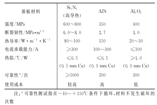 三种陶瓷基板材料物理力学性能对比