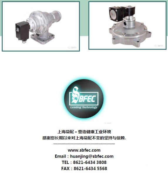 上海袋式除尘配件有限公司是国内生产除尘产品品种齐全、质量优异的知名企业。公司主营“SBFEC”品牌的袋式除尘器用脉冲阀、大口径脉冲阀、智能控制系统、脉冲喷吹控制仪、远传先导控制盒、气包、滤袋、气缸、气源处理设备、敲击锤、振动器等专用产品,广泛应用于钢铁冶金、火力发电、水泥、化工、建筑、垃圾焚烧等烟尘治理领域,产品远销50余个国家和地区。40多年来,公司坚持以客户为中心、市场为导向,凭借对环保行业的敬畏与责任,匠心与传承,专注工业烟尘治理领域,智造品质。我们将继续深耕力拓,适度延伸,不断创新,为客户提供智慧、节能、高效的工业烟尘解决方案。